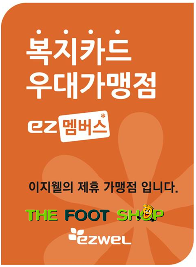 “더 풋샵”은 복지카드를 소지한 고객에 대해 복지포인트로 사용 할 수 있도록 복지카드 가맹점으로 등록하여 “더 풋샵” 고객들에게 더욱 다양한 서비스를 제공 할 것이다.