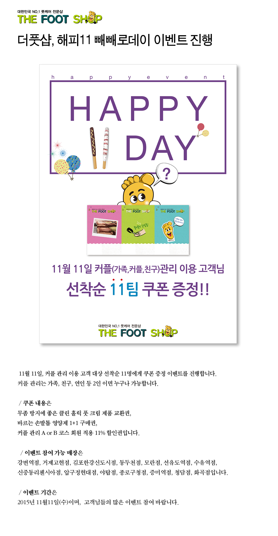 더풋샵, 빼빼로데이 기념 '해피11' 이벤트 진행